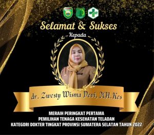 Dua Tenaga Kesehatan (Nakes) yang sebelumnya mengikuti seleksi penilaian Tenaga Kesehatan Teladan Tingkat Provinsi Sumatera Selatan Tahun 2022 berhasil meraih peringkat pertama pemilihan Tenaga Kesehatan Teladan tingkat Provinsi, dengan kategori Terbaik 1 Dokter Teladan dan dan terbaik ke-2 untuk kategori Tenaga Kefarmasian.