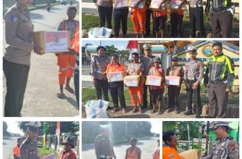 Berbagi Kasih, Satuan Lalu Lintas Polres Teluk Bintuni Salurkan Bantuan Sosial Kepada Para Tenaga Kebersihan Jalan.