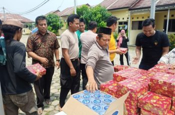 Sebanyak 100 paket nasi kotak dibagikan di gerai warung Jumat barokah Polres Serang di depan halaman masjid As-Salam alam Polres Serang. Jumat, (23/09/2022) pukul 12.20 wib.