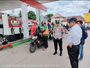 Supaya tetap aman terkendali, stok BBM masih aman, pasokan tetap lancar, tidak terdapat antrean konsumen di stasiun pengisian bahan bakar yang berada di Sekayu kabupaten Musi Banyuasin tepatnya di SPBU kelurahan balai agung dan kelurahan Serasan jaya Jajaran Polsek Sekayu yang di komandoi langsung oleh Kapolsek Sekayu AKP Suvenfri SH dengan di dampingi personil nya turun dan memantau langsung terhadap SPBU yang berada dalam wilayah kecamatan Sekayu.