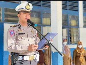 “Saya mengimbau kepada siswa-siswi untuk menumbuhkan kesadaran berlalu lintas sejak dini, batasan umur untuk berkendara sesuai undang-undang adalah minimal 17 tahun, kewajiban menggunakan helm SNI bagi pengendara dan boncengan sepeda motor, serta penjelasan berbagai bentuk pelanggaran lalu lintas beserta besaran denda tilang sesuai UU No. 22 Tahun 2009 tentang LLAJ”, terangnya.