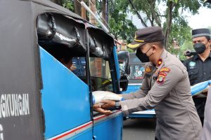 Pembagian sembako yang diberikan Polres Metro Jakarta Barat pun mendapat antusias supir bajaj dan warga sekitar.