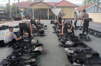 “Baju PHH jumlahnya harus pas. Setiap pasang memiliki tameng, tongkat, deker, helm, serta bajunya. Jadi sekalian perawatan, sekalian dicek kelengkapannya, jumlahnya juga,” kata Aiptu Catur.