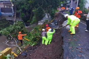 Tingginya curah hujan mengakibatkan tembok pembatas sepanjang 25 meter antara perumahan Griya Satria Kelurahan Bantarsoka Purwokerto Barat dengan sungai Bodas mengalami ambruk dan sebagian jalan aspal longsor ke sungai.