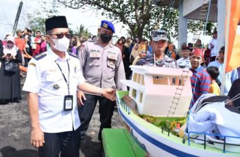 Penlanal Bertempat di Pesisir Pantai Waru Doyong Kelurahan Bulusan Kec. Kalipuro Kab. Banyuwangi, Komandan Pangkalan TNI AL (Danlanal) Banyuwangi yang diwakili Perwira Staf Potensi Maritim (Paspotmar) Lanal Banyuwangi Kapten Laut (KH) Rianto, menghadiri acara tradisi tasyakuran dan petik laut yang diselenggarakan oleh masyarakat nelayan Pantai Waru Doyong, (21/09/2022).