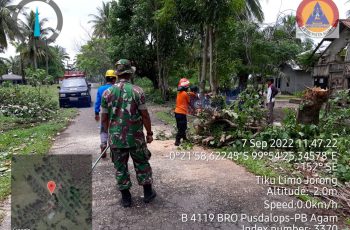 “Satgas BPBD Agam bersama Camat, masyarakat, wali jorong dan melakukan pembersihan pohon yang tumbang tersebut,