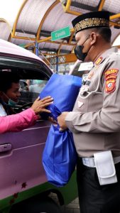 Bertempat di Terminal Cimindi, Kota Cimahi, AKBP Imron Ermawan membagikan bantuan berupa paket sembako kepada sopir Angkot, Rabu 7 September 2022.