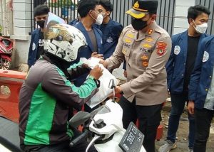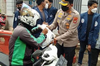 Dalam kegiatan ini, Polres juga menggandeng mahasiswa dari Universitas Trisakti untuk membagi bagikan paket sembako.