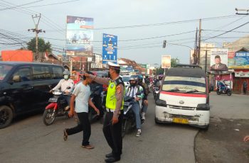 Polsek Ciruas Polres Serang Melaksanakan Pengaturan Lalin di Perempatan Lampu Merah Ciruas