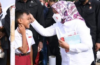 Presiden Joko Widodo didampingi Ibu Iriana Joko Widodo meresmikan Jembatan Gantung Wear Fair, dalam kunjungan kerjanya ke Kabupaten Maluku Tenggara, Provinsi Maluku, pada Rabu, 14 September 2022. Presiden menegaskan bahwa pembangunan infrastruktur berupa jembatan penting untuk mempercepat mobilitas orang dan barang.