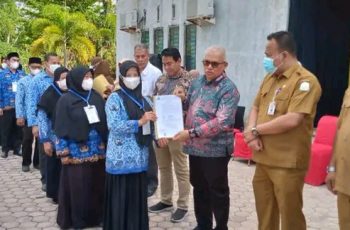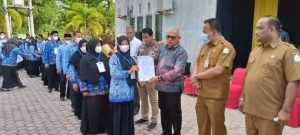 Sebelum melakukan sosialisasi GISA, Sekda Aceh menyerahkan SK kenaikan pangkat kepada puluhan ASN di Kabupaten Aceh Timur. (Sumber: Diskominfo Aceh Timur).