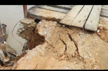 Hal ini tentu sangat membahayakan warga yang melintas bahkan salah seorang warga mengaku sangat takut melintasi jembatan tersebut karna setiap ada yng lewat sedikit demi sedikit tanah tersebut berguguran.