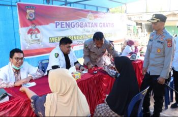 Selain memimpin kegiatan Bansos, Kapolres Aceh Timur juga meninjau pelaksanaan kegiatan Bakti Kesehatan Pengobatan Gratis yang berlangsung di halaman Kantor Geuchik Gampong Keude Blang, Kecamatan Idi Rayeuk.