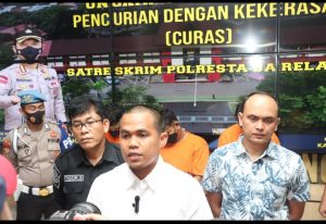 Wakasat Reskrim Polresta Barelang AKP Yusriadi Yusuf, S.I.K. Pimpin Konferensi Pers Ungkap Pelaku Pencurian dengan kekerasan atau Jambret yang di dampingi oleh Kasi Humas AKP Tigor Sidabariba, SH, Serta Kasubnit Sat Reskrim Polresta Barelang Ipda Agusnul Yaqin, S.Psi., M.H. Bertempat di Lobby Mapolresta Barelang. Jumat (21/10/2022)