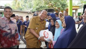 Pelaksana Tugas (Plt) Bupati Langkat H Syah Afandin SH ikut membagikan tali asih berupa 270 paket sembako kepada Kaum Dhuafa pada peringatan hari lahirnya Komunitas Masyarakat Peduli Kawan (KOMPAK) kedua (2) tahun, di Lapangan Masjid Baitul Ma’aruf Desa Tanjung Lenggang, Kecamatan Bahorok, Langkat, Senin (10/10/2022).