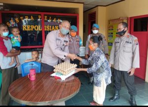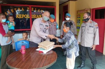 sembako yang di diberikan oleh Kapolsek beserta Anggota Polsek Biru biru kepada warga yang hadir sejumlah 50 orang di halaman Mako Polsek Biru-Biru.