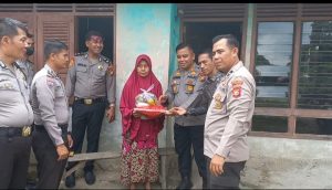 *Adapun bentuk bantuan yang di serahkan berupa 6 (enam) paket sembako yang masing masing paket berisi, beras 5 Kg, gula 1 Kg, minyak 1 Kg dan mie instan 5 bungkus”jelas Kapolsek.