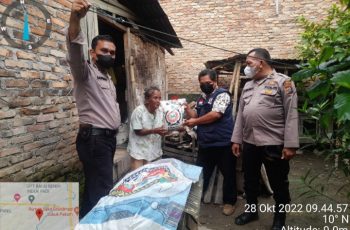 Polsek Lubuk Pakam Polresta Deli Serdang bagikan Bantuan Sosial (Bansos) kepada masyarakat, dalam upaya meringankan beban masyarakat pasca kenaikan harga BBM, Jumat (28/10/2022).