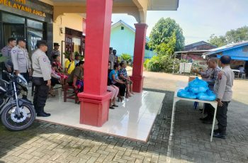 Polsek Namorambe Polresta Deli Serdang bagikan Bantuan Sosial (Bansos) kepada masyarakat, dalam upaya meringankan beban masyarakat pasca kenaikan harga BBM, Kamis (20/10/2022).