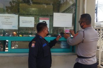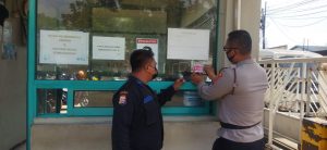 Anggota Sat Binmas Polres Serang melaksanakan penempelan Stiker Call Center Pelayanan Kepolisian 110 di ruang publik dan tempat ramai. Senin, (02/10/2022).