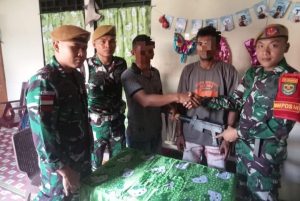 Satgas Organik Yon Arhanud 3/YBY Kodam III/Slw kembali menerima senjata laras panjang rakitan dari warga Desa Wononggila Kecamatan Loloda Kepulauan, Kabupaten Halmahera Utara.