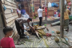 Memperoleh informasi ada rumah warga yang tertimpa pohon Kanit Binmas Polsek Peureulak Barat Aiptu Agus Ramadhani pagi harinya mendatangi rumah Ilyas Abdullah untuk ikut membantu membersihkan puing-puing bekas reruntuhan.