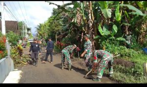 Glenmore – Selalu ada dan dekat dengan masyarakat di manapun berada, aparat Babinsa tak pernah ragu membaur dan bekerja bersama-sama warga Binaanya, seperti dilakukan oleh Babinsa Desa Tegalharjo Serda Moh Fausi yang ikut bergotong royong dalam membersihkan lingkungan yang terdampak banjir di Dusun Krajan Desa Tegalharjo, Jum’at (04/11/2022).