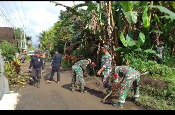 Babinsa Dan Warga Bergotong Royong Membersihkan Lingkungan Desa Akibat banjir
