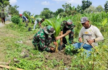 Bersinergi dengan Masyarakat TNI di Bojonegoro Tanam Ratusan Pohon Kelapa Genjah