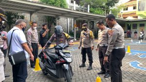 Bhabinkamtibmas Polsek Tambaksari mengungkapkan, sebelum mengikuti ujian teori, para pendaftar akan diberi coaching clinic. Setelah mengikuti ujian teori secara daring, mereka akan melakukan ujian praktik di Halaman Gereja Kristus Raja. Formasinya membentuk angka delapan dengan sejumlah rintangan bagi kendaraan roda dua.