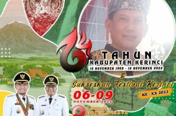 Festival Kerinci Ke-XX tahun 2022 kembali dilaksanakan atau yang biasa disebut Pesta Danau Masyarakat Kerinci kembali digelar di Desa Sanggaran Agung, Danau Kerinci, Kabupaten Kerinci, Provinsi Jambi, yang akan dilaksanakan mulai dari hari minggu tanggal 6 s/d 9 November 2022.
