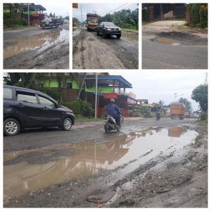 Jalan Lintas Provinsi Bagaikan Berlubang Mirip Kubangan Kerbau di Desa Tiang Layar Pancur Batu