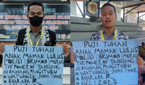 “Saya berterima kasih sekali sama Tuhan karena anak saya sudah bisa menjadi anggota polisi. Terima kasih banyak sama Tuhan. Anak saya masuk polisi tidak ada mengeluarkan biaya,” terang Erita.
