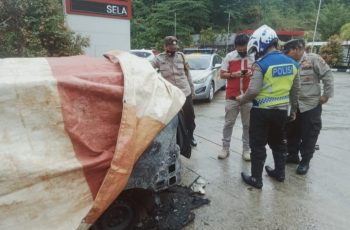 Mobil Terbakar, Polsek Sei Beduk Cepat Tanggap Datangi TKP