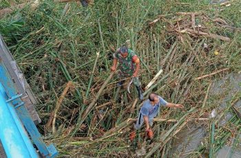 Akibat banyaknya sampah di sungai tersumbat termasuk batang pohon juga yang hanyut sehingga untuk mengatasi hal tersebut.pada pantauan wartawan,, Babinsa Koramil 1426-02/Polombangkeng selatan “Serka Ato Hemrayanto” dibantu Babinsa bergotong royong membersihkan sisa-sisa tumpukan sampah tersebut bersama dengan warga masyarakat,