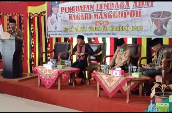 Pemerintah Nagari Manggopoh Kecamatan Lubuk Basung Kabupaten Agam Sumatera Barat, menggelar kegiatan penguatan lembaga adat Nagari Manggopoh yang mendatangkan sebagai Narasumber Prof.Yulizar Yunus Dt. Bagindo Rajo.