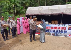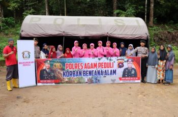 Polres Agam Polda Sumbar, salurkan sembako Ke Jorong Arikia, Tanjung Raya Agam Sumatera Barat, karena sangat pedulinya, maka, penyerahan sembako ke lokasi bencana Alam Tanang Longsor Di Wilkum Polres Agam
