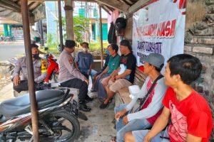 Polsek Bojongsari Polres Purbalingga menggelar kegiatan Jumat Curhat di pangkalan ojek Desa Patemon, Jumat (4/11/2022). Kegiatan dilakukan untuk menyerap informasi kamtibmas dari para tukang ojek sekaligus menjalin komunikasi.