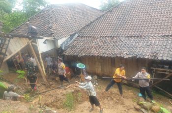 Polsek Sekar dan Koramil Sekar Bersama Warga Gotong Royong Evakuasi Rumah Roboh Akibat Tanah Longsor