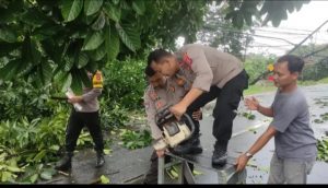 Respon Cepat Laporan Masyarakat, Personel Polsek Cikande Evakuasi Pohon Tumbang