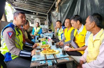 Kasat Lantas Polres Musi Banyuasin (Muba) AKP Ricky Mozam bersama personil satlantas lainnya berkeliling menyambangi beberapa komunitas ojek pengkolan yang berada di wilayah Kecamatan Sekayu, dengan tema Ngopi Bareng Pejuang Rupiah, Jumat 4 November 2022.