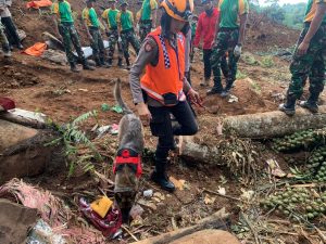 Kadiv Humas Polri Irjen Pol Dedi Prasety menyatakan, salah satu anjing pelacak menemukan satu titik yang terindikasi adanya korban tertimbun tanah longsor di Desa Cideli, Kecamatan Cugenang, Kabupaten Cianjur, Jabar.