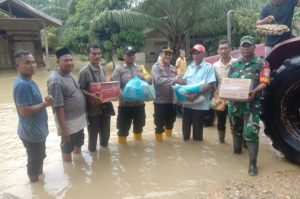 Dalam kegiatan tersebut, Kapolsek juga melakukan peninjauan terhadap beberapa rumah warga terdampak banjir, serta memberikan bantuan sosial kepada warga yang mengungsi.