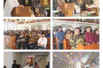 Acara itu di lanjutkan dengan misa Kudus yang di pimpin langsung oleh yang mulia Bapak Uskuptersebut Keuskupan Manokwari Sorong Mgr Hilarius Datus Lega PR, misa kudus itu juga di ikuti semua tamu undangan.