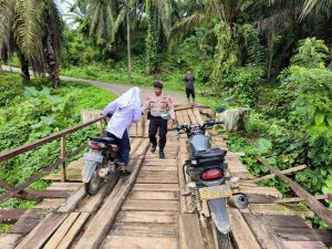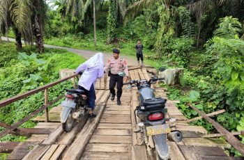 Efek Jembatan Rusak, Ini Yang Dilakukan Anggota Polsek Banda Alam Polres Aceh Timur