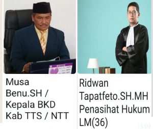 Demikian dijelaskan Ridwan Tapatfeto. SH didampingi dua temannya Boi Benu. SH. MH, dan Yunus Benu. SH Jumat (09/12/2022) tadi pagi usai menyerahkan dokumen somasi kepada BKD bahwa dirinya dan teman-teman terpaksa memberikan somasi hukum kepada Susten Sesfaot melalui kantor BKD Timor Tengah Selatan karena dinilai telah mengingkari janji kesepakatan adat yang ditetapkan bersma untuk denda adat atas kesepakatan bersama dengan besaran nominal Rp.150 Juta dengan kesanggupan tahap pertama Rp.10 Juta belum jelas pertaggung jawabannya” Jelasnya.