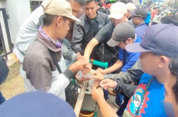 Sambut peserta unjuk rasa Polres Cimahi melaksanakan pengamanan Kegiatan Unjuk Rasa yang dilakukan SP/SB Kab. Bandung Barat yang dilaksanakan di depan Kantor DPRD Kab. Bandung Barat, Kapolres Cimahi borong gerobak makanan, minuman dan pedagang asongan untuk peserta unjuk rasa di DPRD Kab. Bandung Barat, Kamis (8/12/2022).