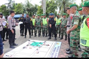 Ratusan personel gabungan TNI Polri mengikuti apel pengamanan yang digelar di lapangan Upacara Kantor Setda Kebumen