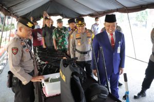 Sejumlah kendaraan patroli, ataupun peralatan pengamanan ditampilkan dan dilakukan pengecekan pada kesempatan itu.