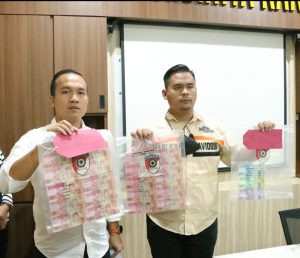 Adapun Barang Bukti yang berhasil disita dari Pelaku RS adalah 1 (Satu) unit HP merk Vivo warna biru, 1 (Satu) plastik berisi gula 1/2 Kg, 4 (Empat) sachet susu bubuk, 22 (Dua Puluh Dua) lembar uang palsu pecahan Rp. 100.000, 1 (Satu) unit sepeda motor merk Honda Vario dan 1 (Satu) unit tas selempang warna coklat.